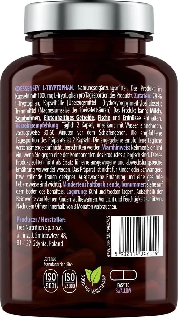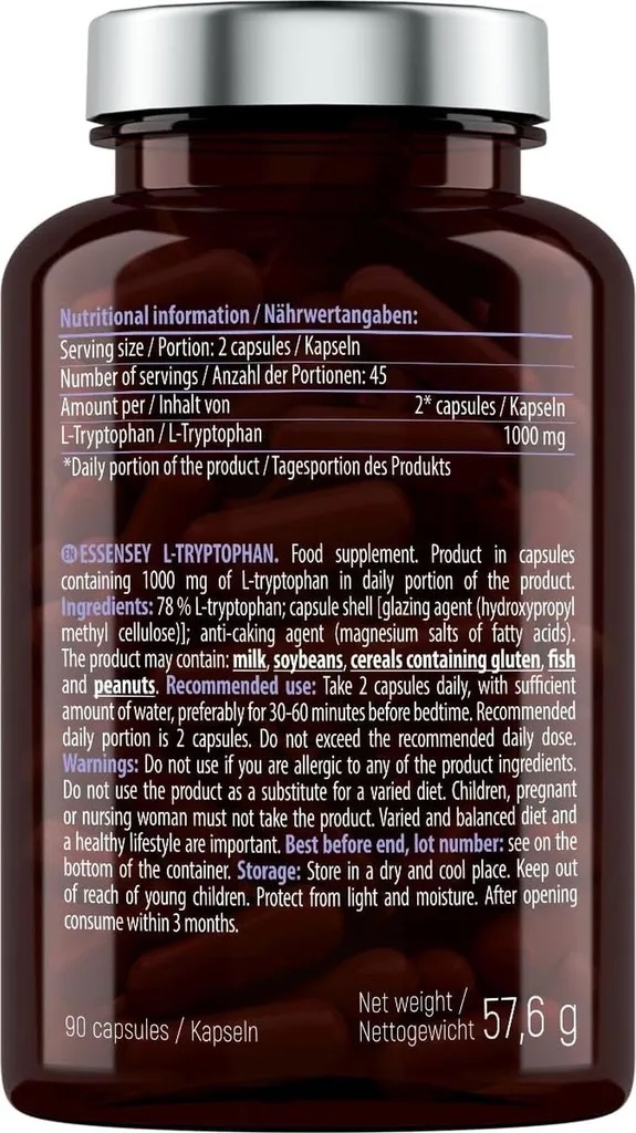 Essensey® L-Tryptophan – dein täglicher Begleiter für Wohlbefinden, Ausgeglichenheit und erholsame Nächte.